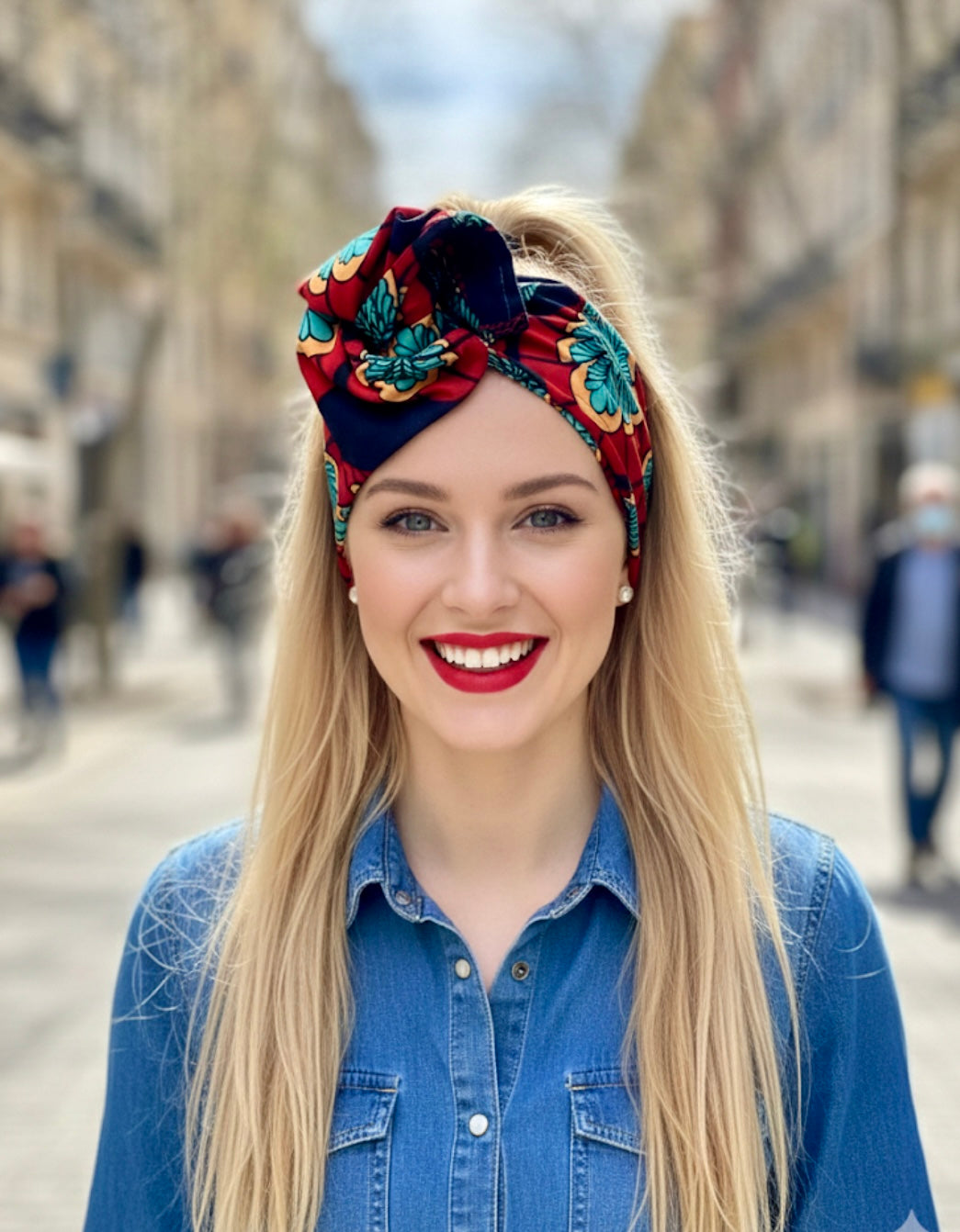 This flexible headband made from Wax fabric (African printed cotton) is a true favorite, designed to instantly brighten and energize your wardrobe.