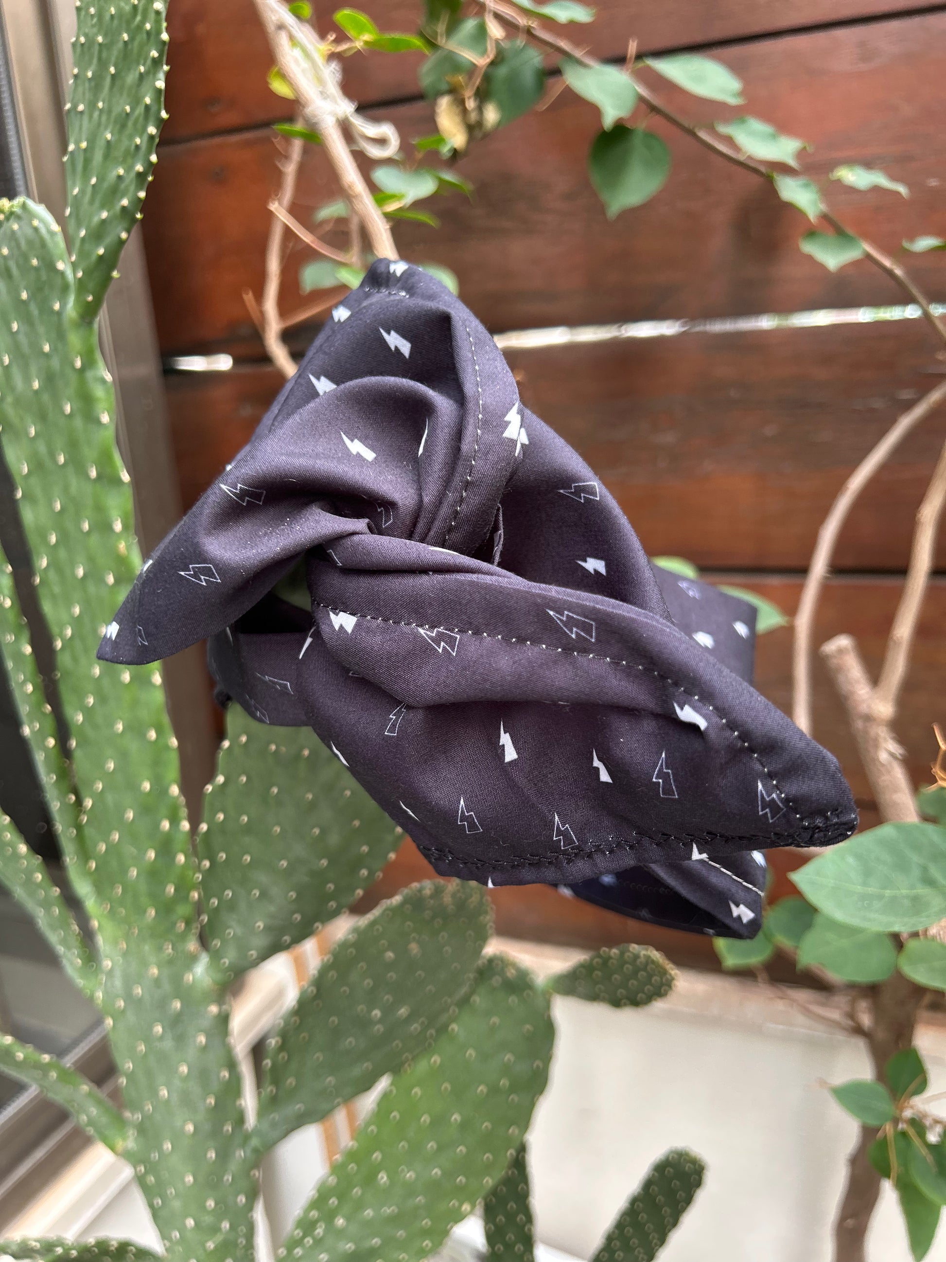Headband flexible en coton imprimé noir, imprimé de petits éclairs blanc! Rock et indémodable !
